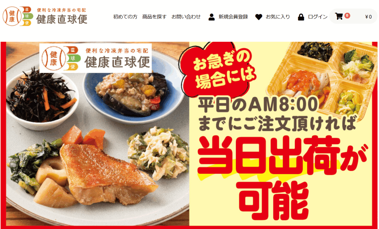 健康直球便は、制限食とやわらかい食事の介護食が、都度購入&送料無料でお届けできる宅配弁当です。
